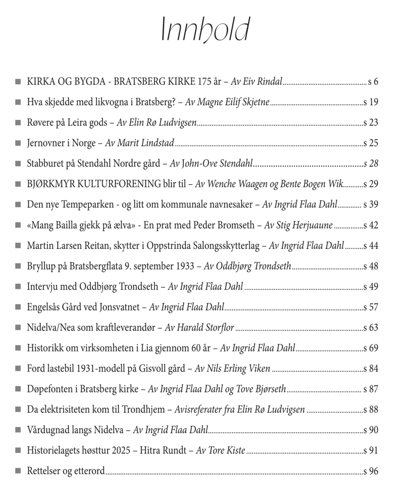 Her er en oversikt over innholdet i årets årbok. Du kan bestille boka ved å gå til vår nettbutikk